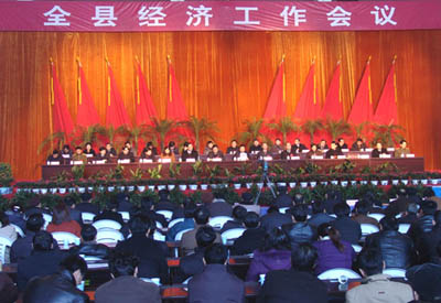 2006年2月10日上午,全縣經(jīng)濟(jì)工作會(huì)議在縣體育館隆重召開(kāi)。這次全縣經(jīng)濟(jì)工作會(huì)議的主要任務(wù)是,全面貫徹落實(shí)中央和省、市經(jīng)濟(jì)工作會(huì)議和縣委十屆七次全體(擴(kuò)大)會(huì)議精神,認(rèn)真總結(jié)了2005年經(jīng)濟(jì)工作,表彰了各項(xiàng)先進(jìn),全面部署了2006年各項(xiàng)目標(biāo)任務(wù),進(jìn)一步統(tǒng)一全縣上下的思想認(rèn)識(shí),搶抓機(jī)遇,扎實(shí)若干,努力實(shí)現(xiàn)全縣經(jīng)濟(jì)又快又好地發(fā)展,構(gòu)建和諧當(dāng)涂,為順利實(shí)施“十一五”規(guī)劃開(kāi)好局、起好步??h長(zhǎng)操隆山作了全縣經(jīng)濟(jì)工作報(bào)告,縣委書(shū)記毛長(zhǎng)江發(fā)表了重要講話。縣委、縣人大、縣政府、縣政協(xié)、縣紀(jì)委、縣人武部負(fù)責(zé)同志,縣委委員、候補(bǔ)委員,縣紀(jì)委委員,縣人大常委、政協(xié)常委,曾擔(dān)任縣級(jí)實(shí)職的離退休老干部,各工委書(shū)記,各鄉(xiāng)鎮(zhèn)黨委書(shū)記、人大主席,鄉(xiāng)鎮(zhèn)長(zhǎng)和文書(shū),各村(居委員)總支(支部)書(shū)記、主任和縣直各部、委、局、辦負(fù)責(zé)人、部分機(jī)關(guān)干部代表等共計(jì)2000多名干部職工參加了會(huì)議。