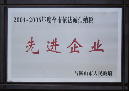 我公司受市政府表彰 被評(píng)為04-05年度“依法誠信納稅先進(jìn)企業(yè)”