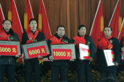 我公司獲得了“納稅大戶”(獎(jiǎng)金10000元)和“品牌與科技創(chuàng)新先進(jìn)企業(yè)”(獎(jiǎng)金2000元)兩項(xiàng)大獎(jiǎng),我司青島辦事處經(jīng)理?xiàng)钅緜€(gè)人榮獲了“十佳推銷員”稱號。