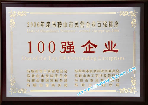 近期,由馬鞍山市工商業(yè)聯(lián)合會及馬鞍山市總商會聯(lián)合主辦,市發(fā)改委,經(jīng)委,工商局,國稅局,地稅局,商務(wù)局,統(tǒng)計局共同組織開展的2006年度全市民營企業(yè)百強排序工作已落下帷幕。我公司入圍2006年馬鞍山市民營企業(yè)營業(yè)收入總額100及市民營企業(yè)納稅總額100,也是我公司連續(xù)三年獲此殊榮。