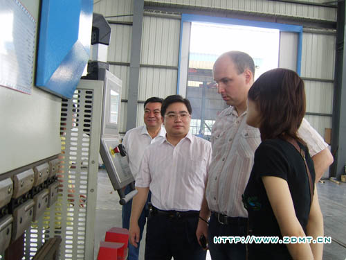 在中德公司領(lǐng)導(dǎo)的陪同下,尼爾森先生來(lái)到了我們的車間。尼爾森先生尤其關(guān)注數(shù)控類機(jī)床,對(duì)數(shù)控機(jī)床成品都一一細(xì)細(xì)查看。在正在生產(chǎn)中的大型數(shù)控雙機(jī)聯(lián)動(dòng)折彎?rùn)C(jī)前,尼爾森表現(xiàn)出了極大的興趣,認(rèn)真的向負(fù)責(zé)人了解機(jī)器的情況。在大型裝配車間,尼爾森一行對(duì)中德車間的管理布局及環(huán)境表示了贊揚(yáng),雖然天氣很熱,干凈整潔的車間環(huán)境讓他們輕松地進(jìn)行參觀。另外,負(fù)責(zé)人還向他們介紹了產(chǎn)品設(shè)計(jì)方面的一些小細(xì)節(jié)如夾塊、T型槽等等,這些細(xì)節(jié)體現(xiàn)出了中德產(chǎn)品使客戶在使用產(chǎn)品過(guò)程中將會(huì)得到極大的便利。
