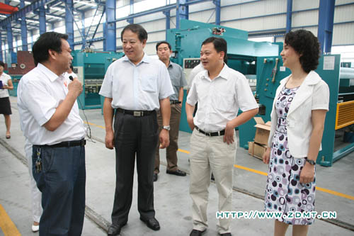 公司董事長(zhǎng)鄭長(zhǎng)玉向領(lǐng)導(dǎo)一行匯報(bào)了中德的發(fā)展歷程及目前的發(fā)展?fàn)顩r。重點(diǎn)介紹了我公司在車間管理和質(zhì)量監(jiān)督體制方面的完善工作,并從目前的發(fā)展局勢(shì)展望更好的發(fā)展前景。王司長(zhǎng)也關(guān)切地向公司領(lǐng)導(dǎo)了解一些機(jī)器方面的情況,在聽到鄭董事長(zhǎng)匯報(bào)說(shuō)中德不會(huì)因目前的成績(jī)而有絲毫懈怠時(shí),王司長(zhǎng)滿意的點(diǎn)了點(diǎn)頭。參觀過(guò)大型裝配車間后,領(lǐng)導(dǎo)一行來(lái)到了成品車間,擺放在這里的一臺(tái)雙機(jī)聯(lián)動(dòng)數(shù)控折彎?rùn)C(jī)迅速地吸引了大家的眼球,鄭董事長(zhǎng)向領(lǐng)導(dǎo)介紹說(shuō)這臺(tái)機(jī)器已經(jīng)經(jīng)過(guò)商檢并即將發(fā)往波蘭并非常自豪地說(shuō)這位波蘭客商正是看中了中德的實(shí)力才會(huì)放心的與我們合作。隨后公司總經(jīng)理鄭小平向領(lǐng)導(dǎo)介紹了目前中德的國(guó)外代理點(diǎn)及國(guó)外銷售情況,表示中德還有非常大的外貿(mào)發(fā)展空間。