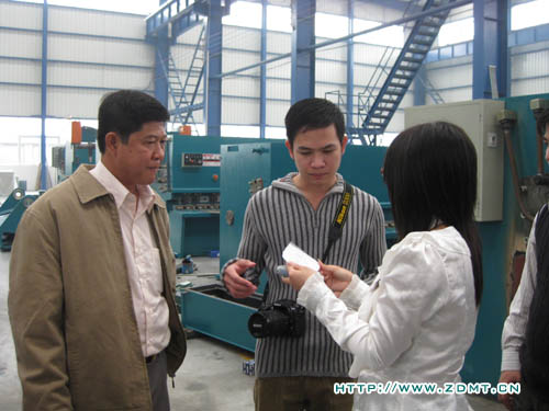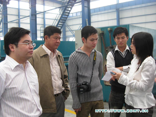 KONG KHEANG先生已經(jīng)跟我們通過網(wǎng)絡(luò)和電話聯(lián)系了近一個月,對中德機(jī)床表現(xiàn)了強(qiáng)烈的購買需求。此次專程拜訪中德,正是為了洽談有關(guān)雙機(jī)事宜,順便實地考察。KONG KHEANG先生從事板料加工多年,對機(jī)器的操作是輕車熟路,目前自己的工廠里也有幾臺被撕去標(biāo)牌的中國機(jī)床。這一次,實實在在的看到中德的機(jī)床以后,光光是機(jī)身油漆的光潔,整體的外觀,就使他很激動,親自體驗了一下我們一臺正在調(diào)試的折彎機(jī),然后心滿意足的笑了。